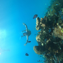 It is about a 5-10 minute boat ride to get to 3 Rocks. It is anywhere from 10-25 feet deep. You'll find schools of sergeant majors, butterflyfish, damselfish, trumpetfish, parrotfish, and sometimes octopus, moray eels, or even sea turtles.